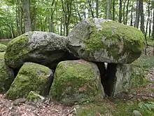 The site consists of a passage grave, unchambered long barrows, and other tumuli.[2] The most impressive monument, Borkowo 1, is a passage grave made with heavy boulders and capstones.[2] It is around 4.5 metres long, with a width of 1.5 metres.[2] Excavations revealed a cremation and a few pottery sherds.[2] The grave is assigned to the Funnelbeaker culture of the Chalcolithic Age.[2]
