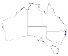 This boronia grows in damp gullies and near creeks in disjunct populations near Wauchope, Urunga and Grafton.[2][3]