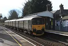 Bramley railway station is on the Reading to Basingstoke Line in Bramley, Hampshire, England.[1] It is 46 miles 41 chains (74.9 km) from London Paddington and is served by Great Western Railway's local services between Basingstoke and Reading.[2] The station is 5 miles (8 km) north of Basingstoke.[3] The line opened in 1848, but the station did not open until 1895. There is a level crossing at the north end of the platforms.[4]