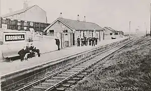 Broomhill railway station served the village of Broomhill in Northumberland, England, a former pit village. The station was on a short branch line of about 5 miles (8 km) which linked the town of Amble with the East Coast Main Line near to Chevington.[2]