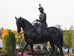 A statue of Queen Elizabeth II riding Burmese, in Regina, Saskatchewan