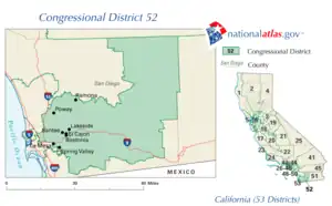 As of the 2020 redistricting, California's 52nd congressional district is located in Southern California. It encompasses the South Bay region of San Diego County.