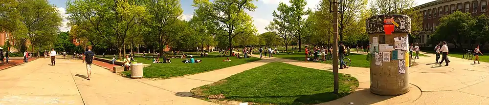A panorama facing southeast on UIUC's Main Quad in 2009