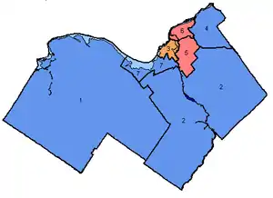 Map of the region's ridings in 1980. Colours show the result from the 1980 election