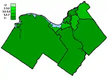 With the exception of the more conservative rural western and southern parts, the former Region of Ottawa-Carleton which became the new City of Ottawa in 2001, has traditionally been a Liberal heartland. A high proportion of Francophones and civil servants had made ridings such as Ottawa—Vanier among the safest Liberal seats in the country, however, now there are probably only two safe Liberal seats in Ottawa - Ottawa South and Ottawa—Vanier. The NDP's only historical victory in the area, Ottawa Centre in 1984, was repeated in 2004, as their popular former leader Ed Broadbent was elected. The Green Party's best seat in the province also came in Ottawa Centre. The seat was retained in 2006 after Broadbent's retirement, by Paul Dewar (son of former mayor Marion Dewar).