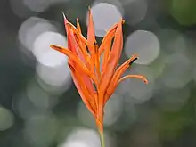 Generally curved, orange, small (4–7.5 cm long) flowers with free part of staminodes erect, floral bracts mostly caducous, and upper side of leaves often dark brown to black in herbarium material, lower side more or less lanuginose. In addition, the seeds are ellipsoid and relatively small (4–7 × 2–4.5 mm).