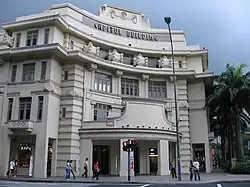 During the Japanese Occupation, the Mansions' adjoined theatre operated under the name Kyo-Ei Gekijo, the theatre's English-language movies were later forbidden by the Japanese after a few months and replaced them with their own films and orchestras. The theatre operated until 1944, when a bomb planted by the anti-Japanese resistance damaged it and the Mansions itself.[3]