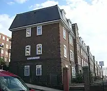 In the late 19th century and early 20th century, Carlton Hill's notoriety as a slum increased. Poverty, drunkenness, disease and low living standards were rife.[3][26] Brighton's reputation was damaged by a disparaging article in The Lancet in 1882: making reference to Carlton Hill, it criticised the town's poor standards of health.[22] Assisted by government funding, Brighton Corporation undertook extensive slum clearance from 1928 until the start of World War II, transforming the area's appearance.[3][5] Two large blocks of flats—Brighton Corporation's first council flats—were built to rehouse many of the displaced residents. The Milner Flats, a long four-storey block, stand on the site of Woburn Place, and were completed in 1934. Alderman Hugh Milner Black, a Corporation member who campaigned for housing improvements in Brighton, was commemorated in the naming. Kingswood Flats, on the site of Nelson Place and a Primitive Methodist chapel, were built in 1938. The name refers to Minister for Health Kingsley Wood.[4][27] Some displaced residents were moved out of the area: the new council estates of Whitehawk and Moulsecoomb, built in the 1920s and early 1930s on the fringe of Brighton, accommodated many former Carlton Hill residents.[26][28] An earlier low-rise development took place in 1931, when the small Tarnerland council estate was built on empty land near Tilbury Place.[23]
