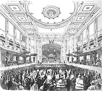 Built by Georg Carstensen, founder of Tivoli Gardens, Casino was originally envisioned as a "Winter Tivoli" with bazaar, promenade concerts and soirées. Carstensen financed the project through the sale of shares. In November 1845, he had raised 200,000 Danish rigsdaler.[1] The building was designed by H. C. Stilling who had also worked for Carstensen during the establishment of Tivoli Gardens. The entertainment venue opened on 22 February 1847.[2]