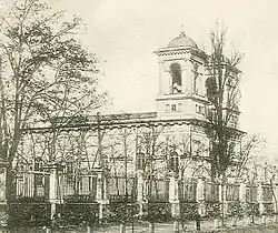 The neoclassical church was built in 1836 by architect Avraam Melnikov, thanks to grants by Tsar Nicholas I of Russia. With the advent of Soviet power in 1944, all parish activities ceased, in 1963 the church was closed and the faithful were forced to go to a small chapel in the cemetery. In 1989, the building was returned to the parish. The church has been host since 1993 of the Apostolic Administration of Moldova, and since 2001 the newly established Diocese of Chișinău. A series of restoration works began in the spring of 2002 and ended in 2004.
