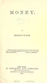 • Moran, Charles (1863). Money. New York: D. Appleton and Company via Internet Archive.