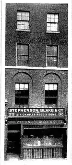 Reed began the business side of his career in 1836 as an apprentice to a firm of woolen manufacturers at Leeds. In 1839, with his friend Thomas Edward Plint, he started and edited a magazine called The Leeds Repository, and on returning to London he co-founded the firm of Tyler & Reed, printers and typefounders in 1842. Reed changed business partners several times, becoming a partner in the famous Fann Street Foundry in Fann Street off Aldersgate Street in 1866 (which thereby became 'Reed & Fox'). The Fann Street business formed the basis for his own type-founding business Sir Charles Reed & Sons, whose office at 33 Aldersgate Street is illustrated.[7]