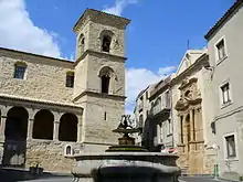 View from the Piazza Neglia of the fountain in foreground; on the left the bell-tower and portico of San Tommaso, and on the left the facade of Anime Sante.