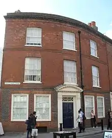 This thoroughly Georgian-style three-storey red-brick building with a curved façade was given its present appearance in 1904 when it became Clayton & Black's office. The entrance porch is elaborately Classical, with Tuscan pilasters and a prominent cornice. Inside, the ground floor was completely remodelled; little pre-20th century work remains.[11][13]