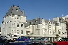 Built at Black Rock on behalf of the French government, this building's curious French Renaissance Revival styling makes it appear "out of place on Brighton's seafront"[49] (which consists almost exclusively of stuccoed Regency-style buildings).[50] Described variously as "drab",[51] "gauche",[52] "chateau-like"[53] and "interesting",[49] it was closed in 1999 and converted into luxury flats. Steep-roofed pavilions with some ironwork were added in 1904 and 1907.[51]