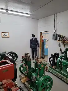 After the war the buildings were bought by B.C. Packers[4] and whaling operations began. Whales were harpooned by a fleet of up to five small "chasers" with harpoon guns. Whales were brought up by steam windlass on the main slipway formerly used by planes and then flensed (stripped of their blubber) on the concourse and processed indoors. By-products included protein feed for animals, and fertilizer.[5] The plant was powered by two World War II US destroyer steam engines.