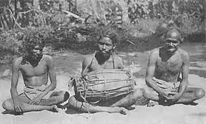 The worship pattern is a combination of Devil-dancing called Sandangu ("ceremony" in Tamil) and orthodox Hindu Agamic rituals. The devil-dancing is unique to Vedar, but the aspect of spirit possession as a part of devil dancing is not unique to Vedar. Locals Tamils also experience spirit procession and trance states during religious festivals. During devil-dancing ceremonies, related family groups congregate in family-owned worship centers and build platforms known as Pandals. These Pandals may have a weapon, such a lance known as a Vel, installed in their middle, a construction similar to the Kirikoroha function of the interior Veddas as well. Male family members dance throughout the night and as part of the ceremony some become possessed by spirits, sometimes those of their recently diseased family members. This pattern is similar in nature to the ancestor-worshipping patterns of the interior Veddas.[18][20] Most of the Sadangu locations are temporary ones without related permanent structures over them, but some have been turned into temples. In the village of Palchennai, one of these temporary structures has become a temple now identified with Hindu high god Vishnu. Vedars also participate in Tamil folk dramas called Kuttus that depict scenes from Hindu epics such as Mahabharatha and Ramayana.[21]