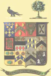 Arms of Coffin of Portledge, Alwington, Devon: Azure, three bezants between eight crosses crosslet or