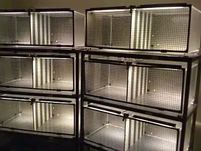 Conditioned place preference (CPP) is a form of Pavlovian conditioning used to measure the motivational effects of objects or experiences.[1] This motivation comes from the pleasurable aspect of the experience, so that the brain can be reminded of the context that surrounded the "encounter".[2] By measuring the amount of time an animal spends in an area that has been associated with a stimulus, researchers can infer the animal's liking for the stimulus.[3] This paradigm can also be used to measure conditioned place aversion with an identical procedure involving aversive stimuli instead. Both procedures usually involve mice or rats as subjects.[4][5] This procedure can be used to measure extinction and reinstatement of the conditioned stimulus. Certain drugs are used in this paradigm to measure their reinforcing properties. Two different methods are used to choose the compartments to be conditioned, and these are biased vs. unbiased. The biased method allows the animal to explore the apparatus, and the compartment they least prefer is the one that the drug is administered in and the one they most prefer is the one where the vehicle is injected.[6] This method allows the animal to choose the compartment they get the drug and vehicle. In comparison, the unbiased method does not allow the animal to choose what compartment they get the drug and vehicle in. Instead, the researcher chooses the compartments.[6]