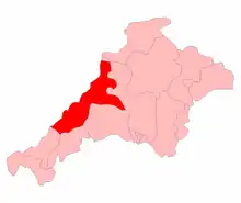1950–1974: The Borough of Launceston, the Urban Districts of Bude-Stratton, Newquay, and Padstow, the Rural Districts of Camelford, Launceston, and Stratton, and parts of the Rural Districts of St Austell and Wadebridge.
