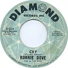 "Cry" is a 1951 popular song written by Churchill Kohlman. The song was first recorded by Ruth Casey on the Cadillac label.[1] The biggest hit version was recorded in New York City by Johnnie Ray and The Four Lads on October 16, 1951. Singer Ronnie Dove also had a big hit with the song in 1966.