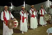 The most common religious dance is probably the Stambali, which originated as a ritual dance to glorify Sidi Saad, a devout Sudanese Muslim who arrived in Tunisia with his followers in the sixteenth century. Today his shrine is located in the Mornag region.[62] However, in the aftermath of independence, the authorities have banned the ritual and closed many of the sanctuaries. While followers still continue their rituals at home, the dance has subsequently been adopted by the Jews and lost its connection to its Islamic origins.[63]