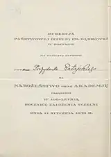The key feature of the school's history in the interwar period was gradual homogenization of the curriculum; both decades, but especially the 1920s, are marked by constant effort to standardize and unify the teaching formula. Starting the 1920/21 schooling year the seminarian curriculum was being shorted by a year every schooling year; in parallel, also the practice school program was being reduced; both modules were closed in 1930 and from then on Dąbrówka did not educate teachers any more.[22] Similarly, the 10-year lyceum curriculum was being curtailed gradually.[23] It was the gymnasium module which started to dominate, though it was subject to change as well;[24] the so-called realgymnasium curriculum was limited and it disappeared entirely in the early 1930s.[25] Since then Dąbrówka adopted mostly a dual humanistic and neo-humanistic gymnasium profile; the latter differed due to emphasis on foreign languages. Once Gimnazjum Klaudyny Potockiej formally split off in the late 1930s Dąbrówka became a standard humanistic gymnasium.[26] The school premises underwent major refurbishment in 1928 and electricity was fully introduced.[27] The school boasted of having a modern meeting hall; it could have been used also as a chapel.[28] Since 1930 the school owned a standard;[29] it was also the year when the first Alumni Congress was held.[30]