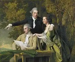 ![]() Daniel Coke, with his very distant cousin the Rev. D'Ewes Coke (standing) and his cousin's wife, by Joseph Wright, 1782 | |