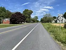 Delaware Route 15 (DE 15) is a state highway in the U.S. state of Delaware. The route runs from DE 14 west of Milford in Kent County north to DE 71/DE 896 in Summit Bridge, New Castle County, just south of the Summit Bridge over the Chesapeake & Delaware Canal. DE 15 winds a path through many rural sections of Delaware, turning along many different roads. Most of the route, with the exception of the southern part of the route from Milford to Canterbury, runs to the west of U.S. Route 13 (US 13). DE 15 serves several cities and towns, including Wyoming, Dover, Clayton, and Middletown. The route intersects DE 12 near Felton, US 13 in Canterbury, DE 10 near Camden, DE 8 in Dover, DE 42 in Seven Hickories, DE 300 and DE 6 in the Clayton area, DE 299 in Middletown, and DE 286 near Summit Bridge.