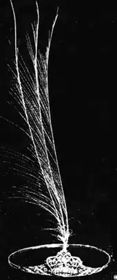 The word derives from the Greek διάδημα diádēma, "band" or "fillet",[1] from διαδέω diadéō, "I bind round", or "I fasten".[2] The term originally referred to the embroidered white silk ribbon, ending in a knot and two fringed strips often draped over the shoulders, that surrounded the head of the king to denote his authority. Such ribbons were also used to crown victorious athletes in important sports games in antiquity. It was later applied to a metal crown, generally in a circular or "fillet" shape. For example, the crown worn by Queen Juliana of the Netherlands was a diadem, as was that of a baron later (in some countries surmounted by three globes). The ancient Celts were believed to have used a thin, semioval gold plate called a mind (Old Irish) as a diadem.[3] Some of the earliest examples of these types of crowns can be found in ancient Egypt, from the simple fabric type to the more elaborate metallic type, and in the Aegean world.[4]