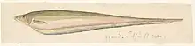 The fish is covered in cycloid scales and typically has 4 to 5 gills with 4 to 11 small gill rakers.[5] The body lacks any dark bands running laterally down the body, something present in Japigny kirschbaum, another species of the Sternopygidae.[5] The fish also typically has 13–14 precaudal vertebrae, differing significantly from the 20–26 precaudal vertebrae present in the Sternopygus genus.[5]