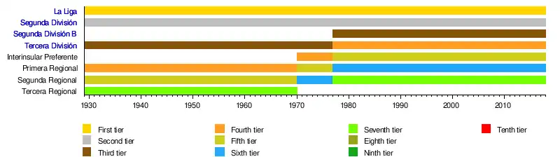 The Interinsular Preferente de Tenerife is the top tier of Tenerife football, with two leagues, the Primera Interinsular Tenerife and Segunda Interinsular Tenerife sitting below it. Clubs that achieve promotion from the Tenerife Preferente go to the Canarian Islands group of the Tercera Division RFEF.
