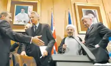 Villepin next to Hassan Rouhani during talks on the Iranian nuclear program