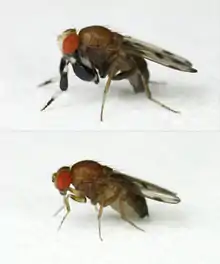 Drosophila prolongata is a fly of the family Drosophilidae. This species is endemic to southeast Asia.[1] Males of this species express one of the most extreme reversed sexual size dimorphism (i.e. males are larger than females) in the Drosophilidae,[2] making this species an interesting model organism for the study of sexual selection. Males also display remarkable copulation courtship behaviour.[3]