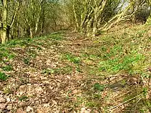 During the years 1781–82 Robert Burns lived in Irvine,[22][23] During this time he took regular walks into the Eglinton Woods via the old Irvine to Kilwinning toll road and the Drukken (Drunken)[9] Steps and back via the site of the old Saint Brides or Bryde's Well at Stanecastle.[24]