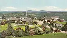 Like all towns in this area, the terrain features hills and valleys. Farmers found the soil hard and rocky, but with effort it yielded maize, oats, barley and potatoes, with some wheat and rye. Orchards were common. The first census, taken in 1790, reported 901 residents.[5] By 1859, there were 1,088.[4] In 1870, the small mill town of Harrisville voted to separate from Dublin, leaving the latter with only 455 residents during the 1880 census.[6]