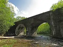 The Boston and Worcester Railroad was chartered June 23, 1831 and construction began in August 1832. The line opened in sections: to West Newton on April 16, 1834; to Wellesley on July 3; to Ashland on September 20; to Westborough in November 1834; and the full length to Worcester on July 4, 1835.[12] The Western Railroad was chartered February 15, 1833 and incorporated March 15, 1833 to connect the B&W to the Hudson and Berkshire Railroad at the New York state line. Construction began in 1837, and the Eastern Division to the Connecticut River in Springfield opened on October 1, 1839. The Western Division, through the Berkshire Hills, opened in sections from both ends from the state line to Pittsfield May 4, 1841, West Springfield to Chester May 24, 1841, Springfield to West Springfield (across the Connecticut River) July 4, 1841, Pittsfield to "Summit" August 9, 1841, and Chester to Summit September 13, 1841.[13]