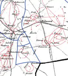 Not included in East Brabantian are Maaslands (including Bosch which is placed in Central North Brabantian, although other classification systems also describe it as East Brabantian), Land-van-Cuijks (which has many similarities with neighboring South Guelderish and the Northern Limburgish dialects), Kleverlandish (a South Guelderish dialect) and Budels (linguistically a Limburgish dialect).[1]