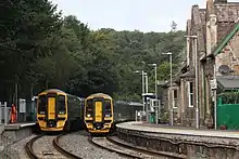 Eggesford railway station is a rural station in Devon, England, serving Eggesford, the town of Chulmleigh and surrounding villages. Despite its name, the station is in the neighbouring civil parish of Chawleigh.[2] It is on the Tarka Line to Barnstaple, 22 miles 27 chains (35.9 km) from Exeter Central at milepost 193.75 from London Waterloo.[3]