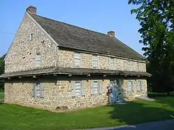 In 1755, Jacob Kohler established a gristmill, located along Coplay Creek just south of the church.[5] The Troxell-Steckel House, which was built in Egypt in 1756, is one of the oldest buildings in Lehigh County[12] and is today operated as a museum and historic site by the Lehigh County Historical Society. The Egypt area was also the location of Fort Deshler, a French and Indian War era frontier fort established in 1760 to protect settlers from Indian attacks.[13] The fort, which was near the present intersection of PA Route 145 and Chestnut Street, stood until about 1940. The site is commemorated by a Pennsylvania Historical and Museum Commission marker.[14] A granite marker, located just outside Egypt at Scheidy's Road and Spring Street in North Whitehall Township, commemorates the last Indian attack in Lehigh County, which occurred on October 8, 1763, when nine settlers were murdered.[15][16]