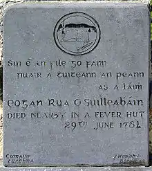 Eoghan Rua Ó Súilleabháin (1748 – 29 June 1784), anglicized as Owen Roe O'Sullivan ("Red Owen"), was an Irish poet. He is known as one of the last great Gaelic poets. A recent anthology of Irish-language poetry speaks of his "extremely musical" poems full of "astonishing technical virtuosity", and also notes that "Eoghan Rua is still spoken of and quoted in Irish-speaking districts in Munster as one of the great wits and playboys of the past."[1]