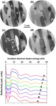 To optimize the growth conditions, it is important to know the number of graphene layers. This number can be determined by using the quantized oscillations of the electron reflectivity. Electrons have a wave character. If they are shot on the graphene surface, they can be reflected either from the graphene surface or from the graphene-SiC interface. The reflected electrons (waves) can interfere with each other. The electron reflectivity itself changes periodically as a function of the incident electron energy and the FLG thickness. For example, thinner FLG provides longer oscillation periods. The most suitable technique for these measurements is the low-energy electron microscopy (LEEM).[1]