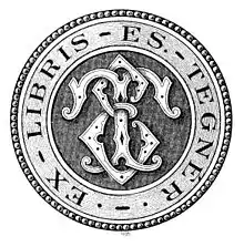 Esaias Tegnér Jr's Ex-Libris (which was also used by both his paternal grandfather and his grandfather's father).