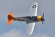 Plans to obtain an aircraft for display in the city began as early as 1986, when a former supervisor at the plant, Frank Whetsel, purchased the wreckage of a P-47D, serial number 42-8320, that had crashed in Lake Kerr in Florida and founded the P-47 Heritage Commission.[3][4][5] The airplane arrived in Evansville the following February and was delivered to the University of Southern Indiana.[6][7] The Commission attempted to raise money by holding a bingo game in 1991, but was accused of violating state gambling laws. A group called the P-47 Foundation, led by Andy Easley, purchased the project from the commission.[8][9]