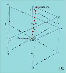 Search patterns are methods for systematically travelling over the surface of the area of water in which the target is likely to be found, while observers and/or instruments are deployed with the intention of detecting the targets of the search. An effective search pattern is one in which the entire surface can be examined with a good chance of detecting the target if it is present, but without excessive overlap, though some overlap is usually considered advisable to allow for inaccurate estimates of target visibility and sea and atmospheric conditions. Several standardised search patterns are in common use, some of which are more suitable for surface vessels, and others are more suitable for aircraft. Similar search patterns are used for underwater searches. Most water surface search patterns are followed relative to a moving datum, so steering is by compass heading and distance is determined by speed through the water and elapsed time. Speed and direction over the ground will vary according to drift.[2]