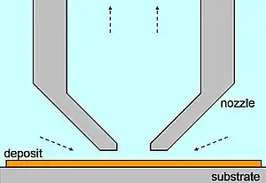 Operating principles of FDG. The separation between nozzle and deposit is measured by monitoring the liquid flowrate into the nozzle