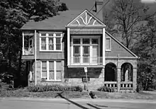 Forest Glen Park and the Forest Inn, at present day National Park Seminary, were developed by the Forest Glen Improvement Company in 1887.[8][9] Originally consisting of 166 acres (67 ha), Forest Glen Park was one of the earliest residential subdivisions in Montgomery County and was developed as a result of Washington, D.C.'s growing population.[8][10] The area was easily accessible to Washington D.C., as it was situated along the Baltimore and Ohio Railroad's Metropolitan Branch.[8][9][11] The Forest Glen Improvement Company developed Forest Glen Park as a residential suburb and resort for Washington D.C. residents seeking a more natural environment.[8][9] The company was recorded in corporate record books on July 15, 1887, and the plat for the Forest Glen Park subdivision was recorded on July 31, 1887.[8] The Forest Glen Improvement Company laid out the neighborhood's avenues to conform with the natural topography and ensured that the lot sizes were large, to allow for "handsome villa sites."[12] The company described the neighborhood as "Washington's most desirable suburb."[11] By April 1887, over two-thirds of the development had been sold.[13] The residential section of Forest Glen Park initially consisted of summer homes and cottages centered around the Forest Inn at the National Park Seminary.[8] It later grew to consist of Victorian-style and early 20th-century residences intermixed with homes built in the 1940s.[14]