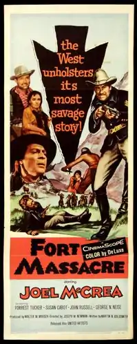 Fort Massacre is a 1958 American western film directed by Joseph M. Newman, starring Joel McCrea, Forrest Tucker, John Russell and Susan Cabot. A possibly mad cavalry commander leads his troops through dangerous Indian territory.[1]