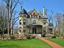 Post Commanders' Quarters, Building 9, in the Fort Sheridan Historic District. They were the most elaborate houses on the base. Like most of Fort Sheridan, it has been converted to a private residence.