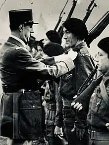 François Thierry-Mieg awarded the Croix de Guerre with palm by General de Gaulle in September 1941 (Camberley camp, Surrey)